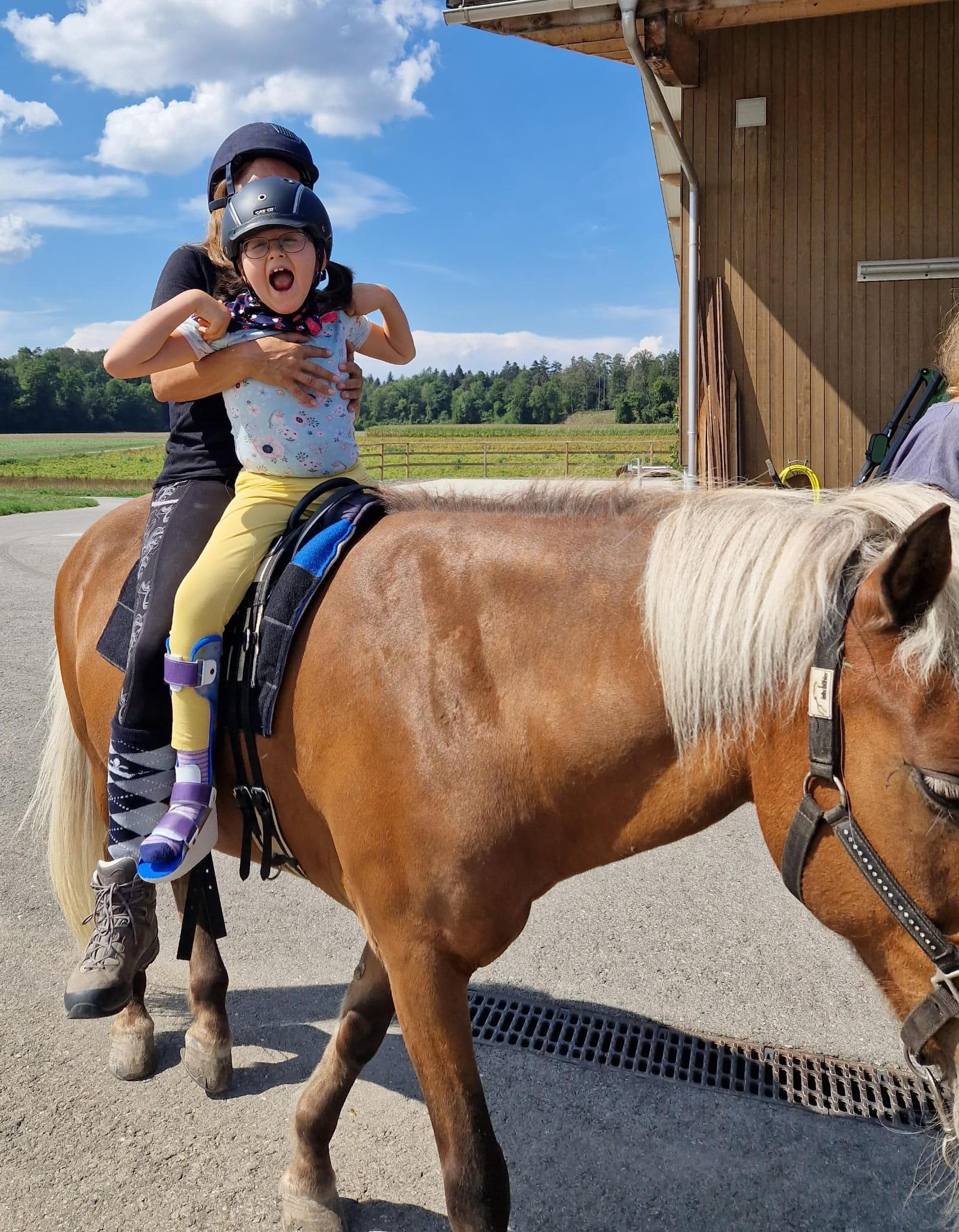 Für Kinder und Erwachsene mit zentralen Bewegungsstörungen wie Zerebralparese, Multiple Sklerose, Trisomie 21 oder Spina Bifida bietet die Hippotherapie-K wertvolle Hilfe. Die anerkannte medizinische Therapieform nutzt die schwingende Bewegung des Pferderückens, denn diese überträgt sich im Schritt auf den Patienten. Geübt wird das symmetrische Sitzen, wie auch das rhythmische mitgehen des Beckens. Auch das Gleichgewicht und die Gleichgewichtsreaktionen werden trainiert. Gleichzeitig findet ein Training der ganzen Rumpfmuskulatur statt.Bei Kindern mit zentralen Bewegungsstörungen und Trisomie 21 sind die Therapiekosten durch die IV, bei Erwachsenen mit M.S durch die Krankenkasse gedeckt.